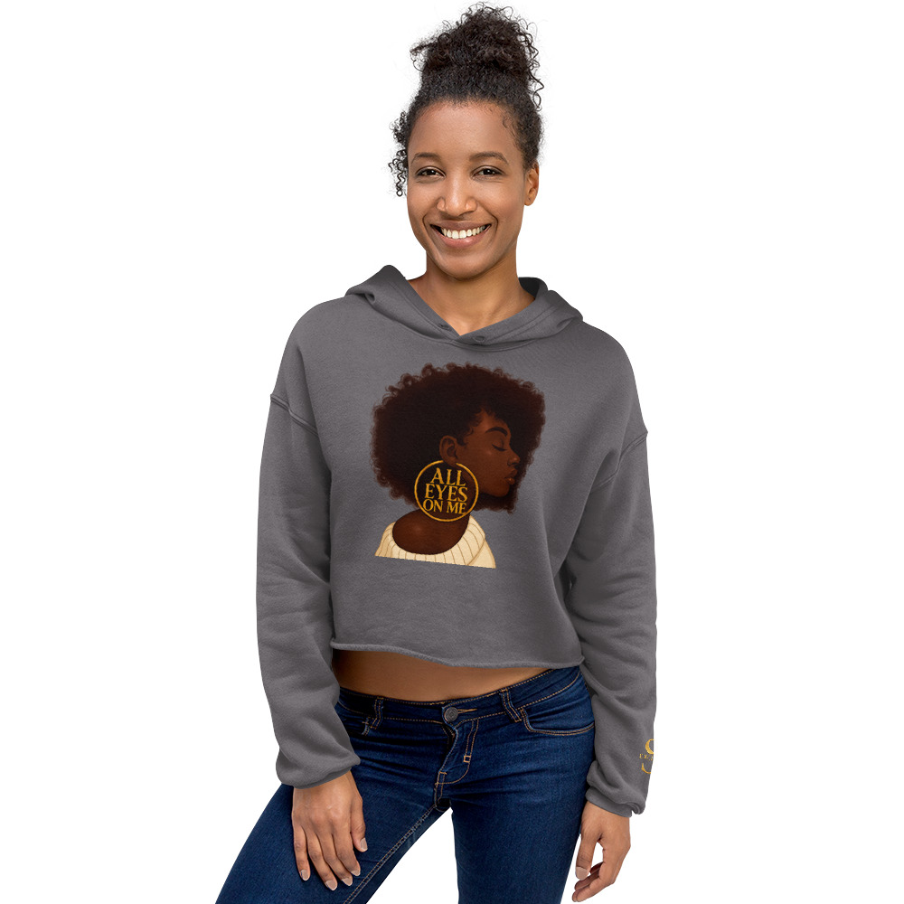 Crop Hoodie Premium Femme « ALL EYES ON ME » Sweat court noir, streetwear chic.
